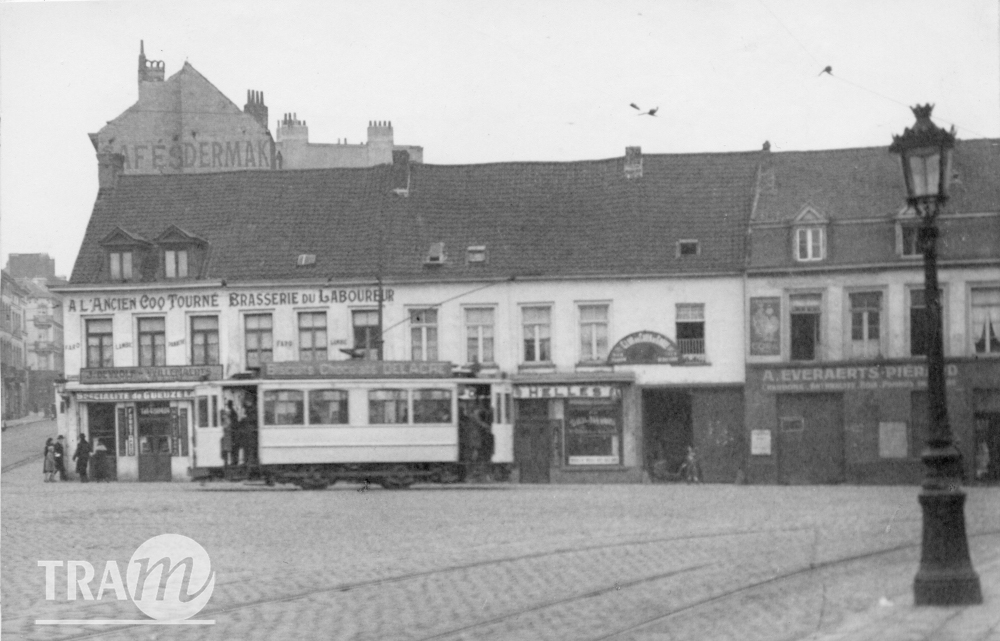 1930, cette motrice de la ligne 80 traverse la place Sainte-Croix (Flagey, de nos jours).